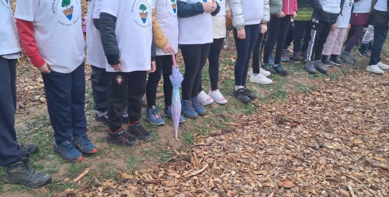 Un grupo de niñas y niños de Artajona ha participado activamente en las labores del Food Forest, contribuyendo al cuidado y desarrollo de este espacio educativo y sostenible.